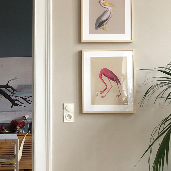 Ein wunderschöner gerahmter Print bei uns im alten Wohnzimmer und jetzt in meiner Küchenecke, die ihr den Videos noch näher kennenlernen werdet. Er ist ein sehr elegantes Tier, dass mit seinem Schnabel die Spirulina aus den Seen filtert und dessen wunderschönes Federkleid durch den Verzehr der Mikroalge herrlich pink gezeichnet ist.